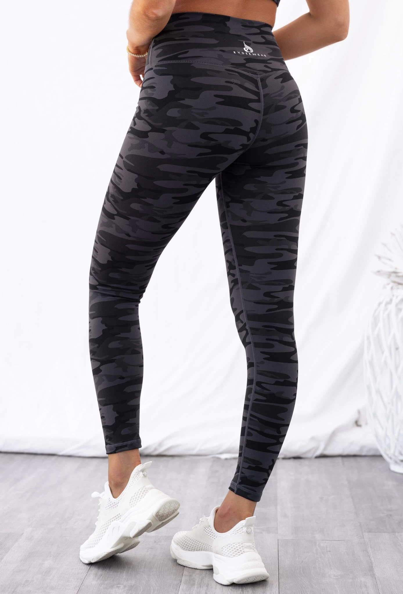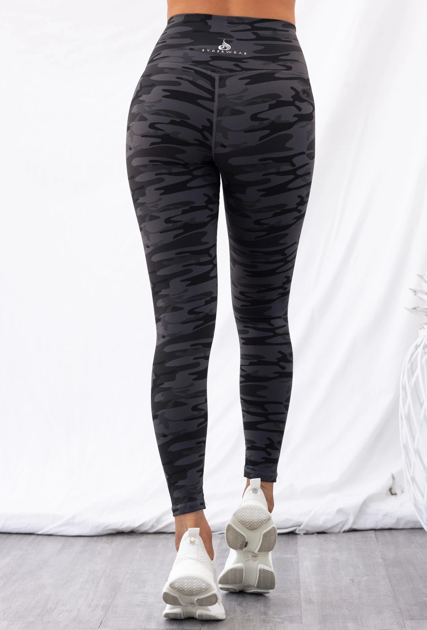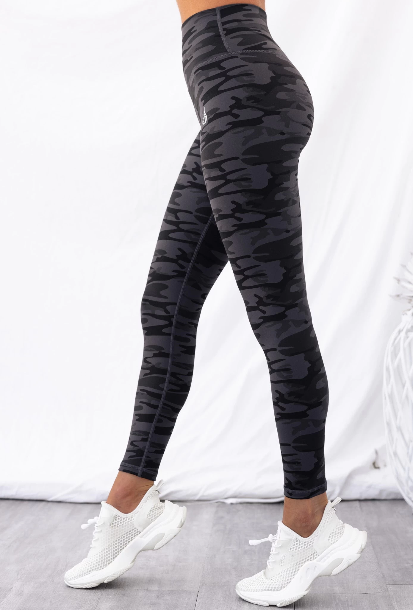 Look AND feel fierce in the Black Camo Full Length Leggings! This ultra flattering style features a high waistband (for a sleek, streamlined fit) teamed with the softest performance fabric for unrestricted movement and all-day comfort. Perfect for various activities including weight training, cardio, yoga, pilates and running errands.
