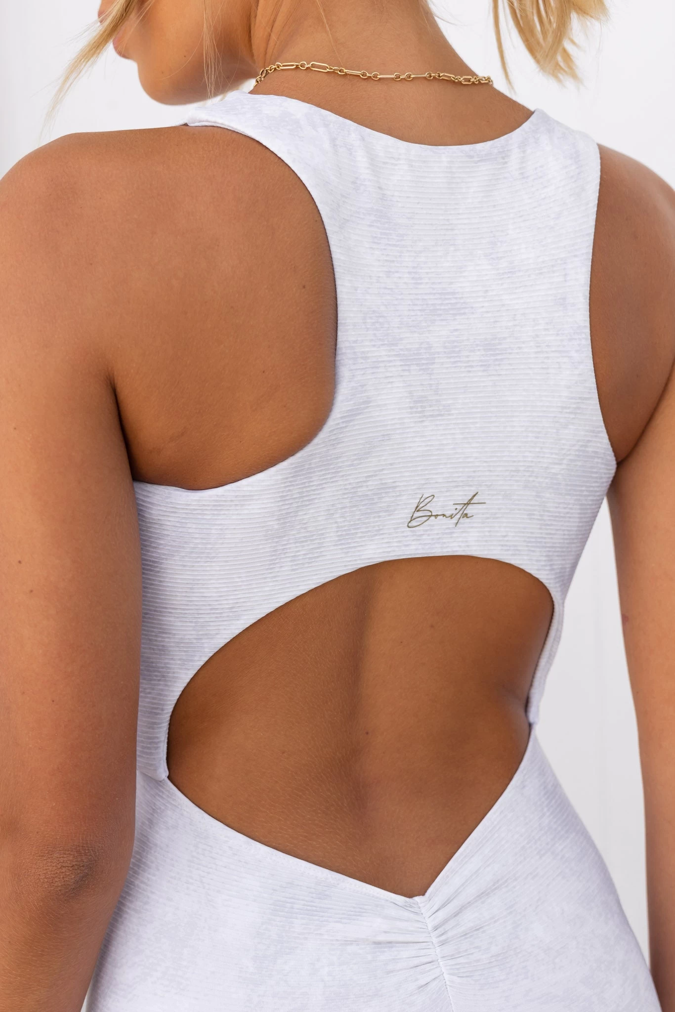 Step into the new year with fresh goals and a cute new fit! The Knot Me Ribbed Jumpsuit features an adjustable knot tie front teamed with a stunning cutout detail and premium, ribbed fabric for a supportive and flattering fit. Great for various activities including weight training, yoga, pilates and running errands. Due to the light colour of the fabric we recommend wearing nude seamless underwear to reduce show through. Style runs small, if you are between sizes we recommend sizing up. Â