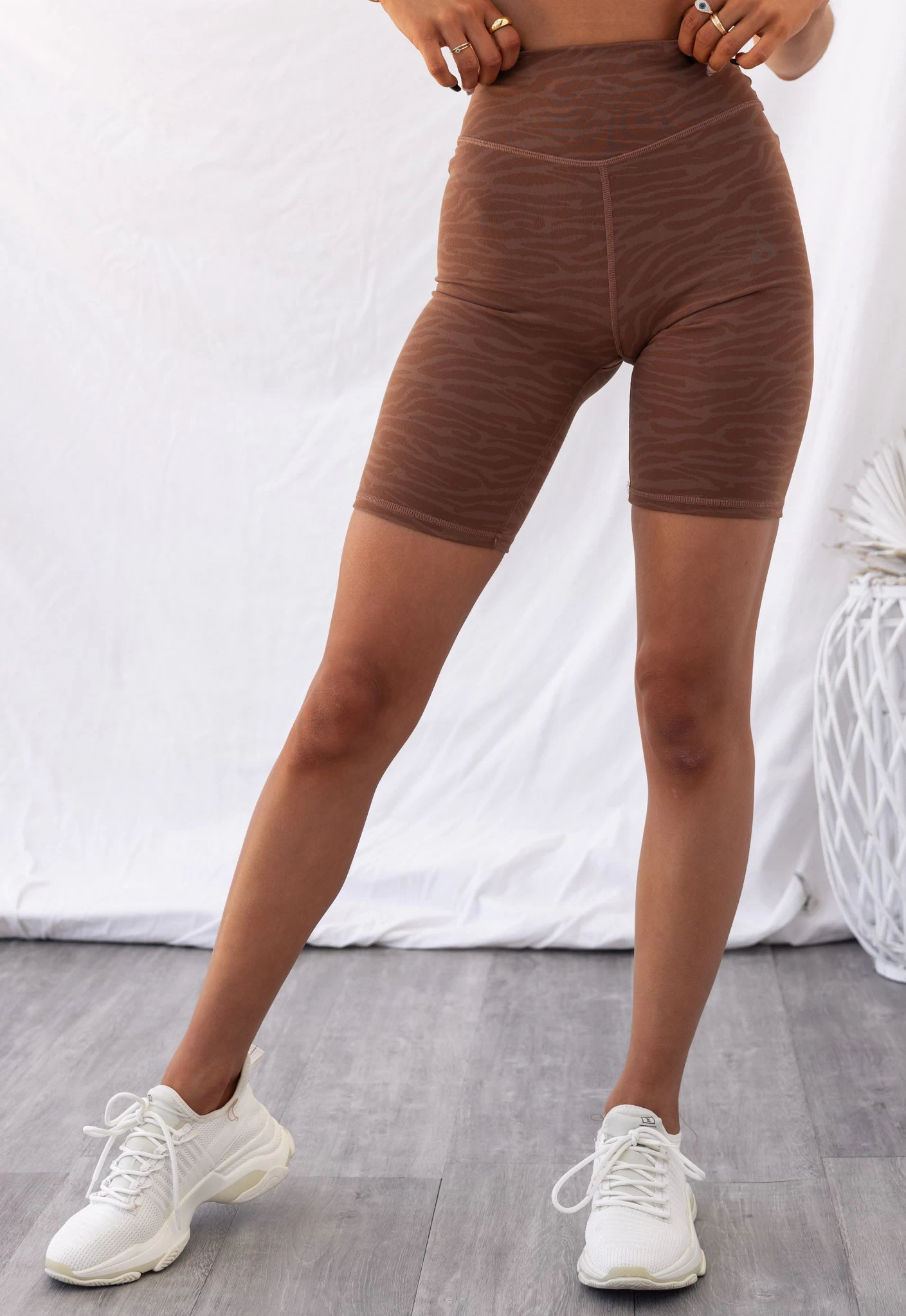 Your next workout just got a whole lot cuter! We are obsessing over the figure flattering high waist band teamed with a sporty mid length and ultra soft performance fabric. Perfect for low to medium impact activities including weight training, yoga, pilates and running errands. Due to the light colour of the fabric we recommend wearing nude seamless underwear to reduce show through.Â