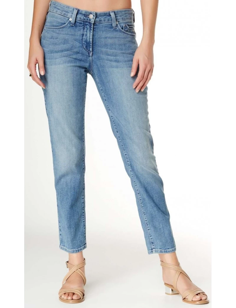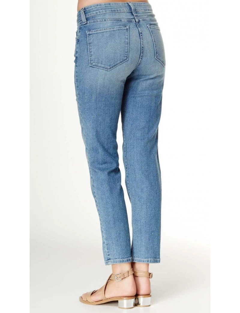 NYDJ Alisha Ankle Pants in light blue Huntington Beach Wash. Comfort and curve appeal in a light summertime wash with a breezy ankle length, five-pocket styling and plain back pockets.