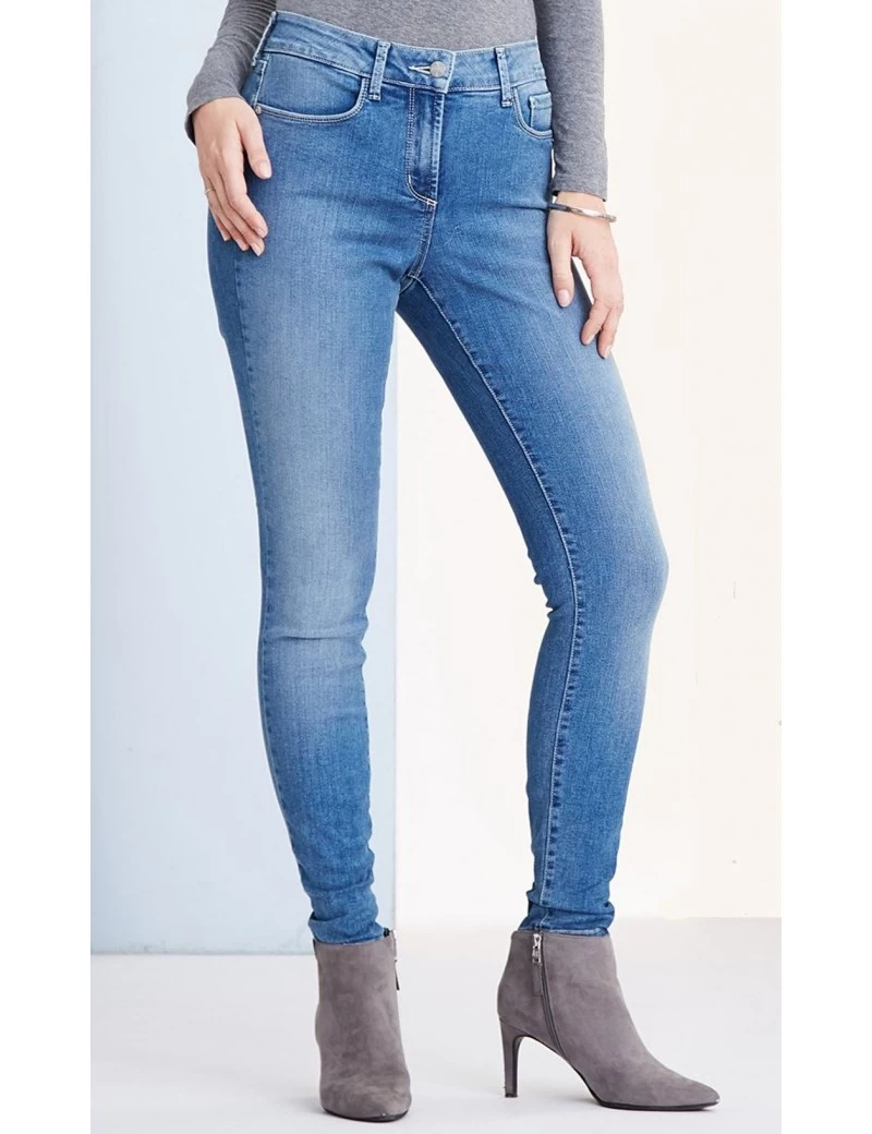NYDJ Ami Super Skinny Jeans in light blue Helton Wash. Back pocket detail in a five pocket jean with NYDJ Lift Tuck technology to make you look and feel one size smaller instantly.