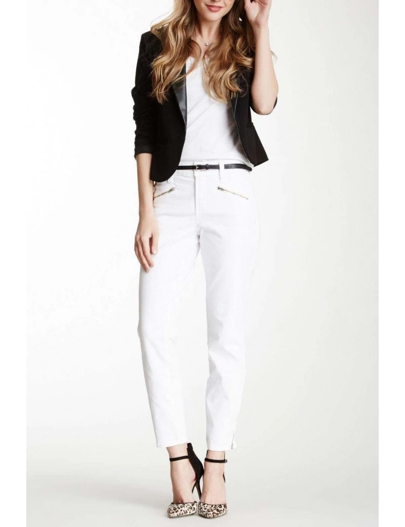 Look and feel absolutely fabulous in a pair of White NYDJ Angelina Leggings. These Slim Leggings feature Functioning Front and Back Pockets and zipper details at the leg opening. NYDJ  are known for their amazing lift and tuck technology that makes you look a full size smaller, instantly. Color – White