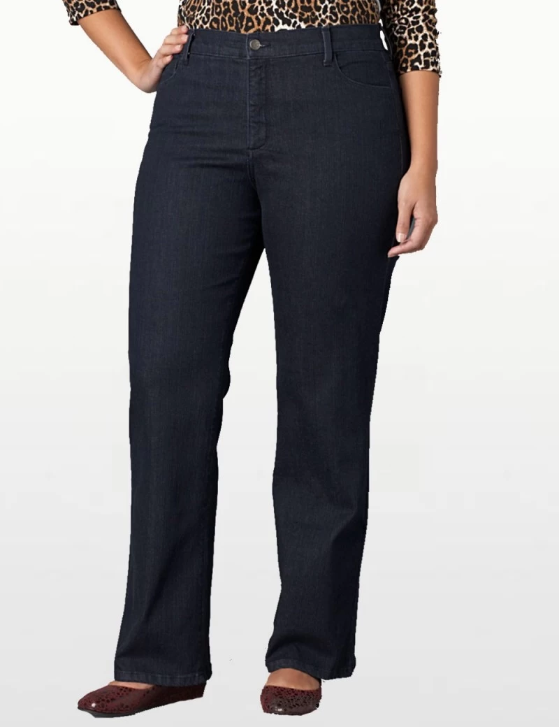 Barbara Modern Bootcut Jeans. A narrower bootcut gives you the long-legged silhouette you love – more flair with less flare! Five-pocket styling with embellished back pockets, contrast stitching and button closure.