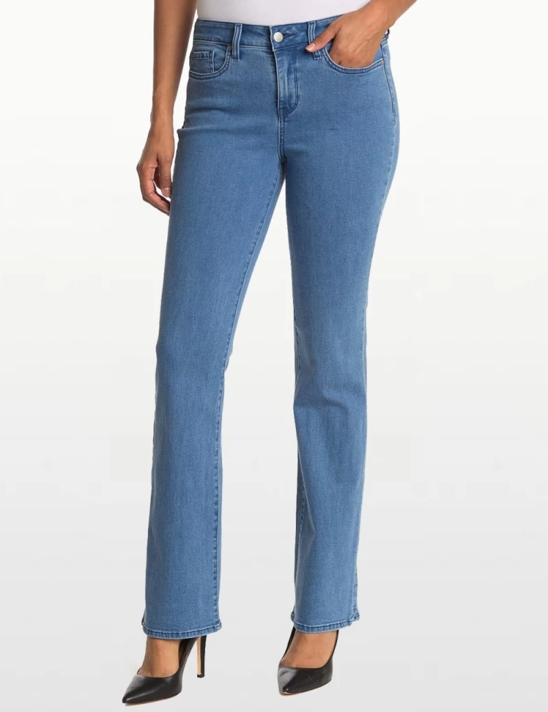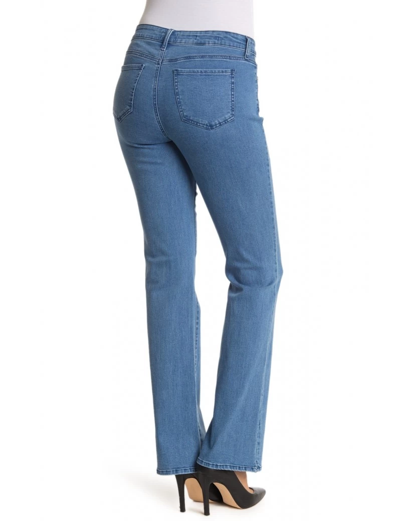 NYDJ Barbara Modern Bootcut Jeans in Light Blue Mina Wash with a 1 inch slit opening on outside seam an ultra-soft feel fabric with with excellent stretch and incredible recovery and NYDJ Lift Tuck Technology
