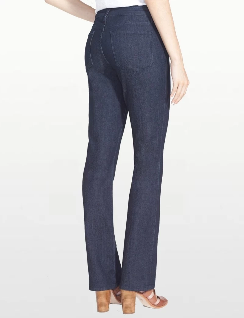 NYDJ’s Billie Mini Bootcut Jeans in Dark Wash. Plain back pockets jeans, classic five-pocket styling, contrast top stitching, zip-fly, button-closure will surely become your favorite pair of jeans.