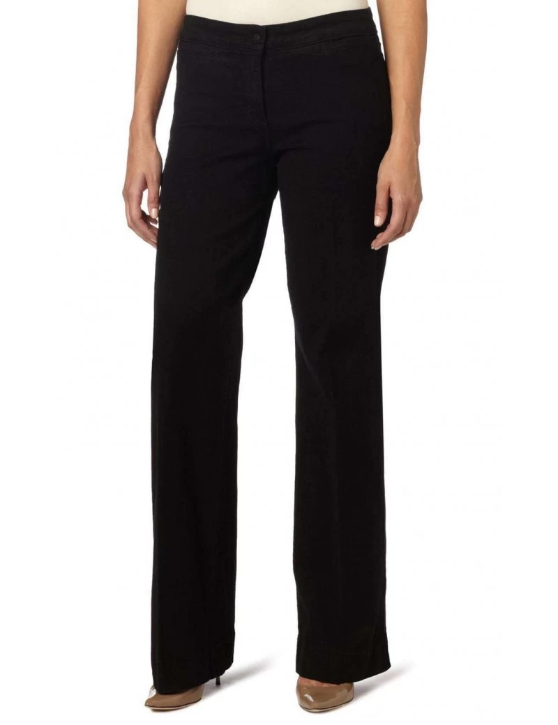 NYDJ Stylish and flattering Greta black wide leg trousers with tonal topstitching are known for their amazing lift and tuck technology, lift – the technology actually lifts and subtly reshapes your curves so you look good in jeans, again, tuck – the revolutionary criss-cross panel keeps your tummy in control and makes you look a full size smaller, instantly.