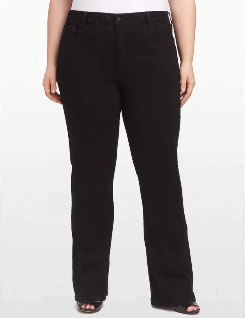 Flatter yourself. These black Hayden bootcut jeans are stylish and shape enhancing. The subtle back pocket stitching accentuates your curves and the exclusive NYDJ slimming fit smooths and slims.