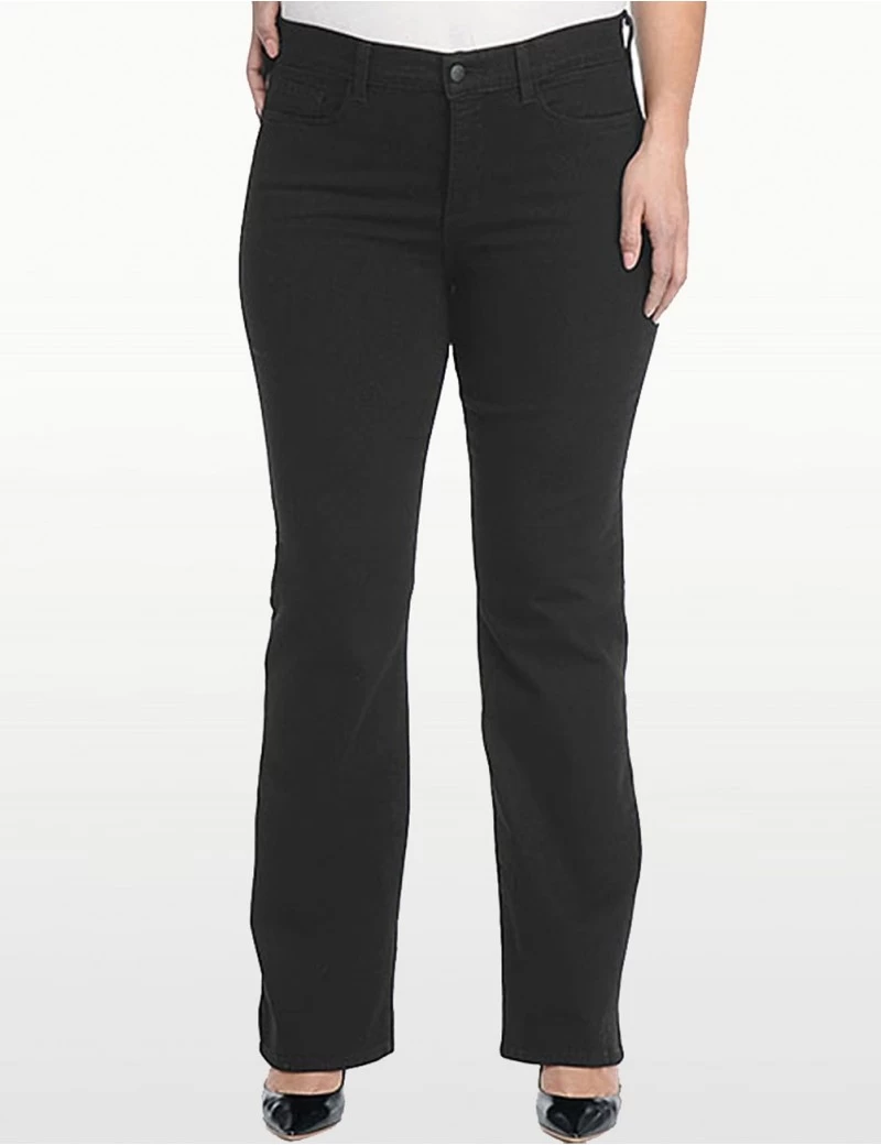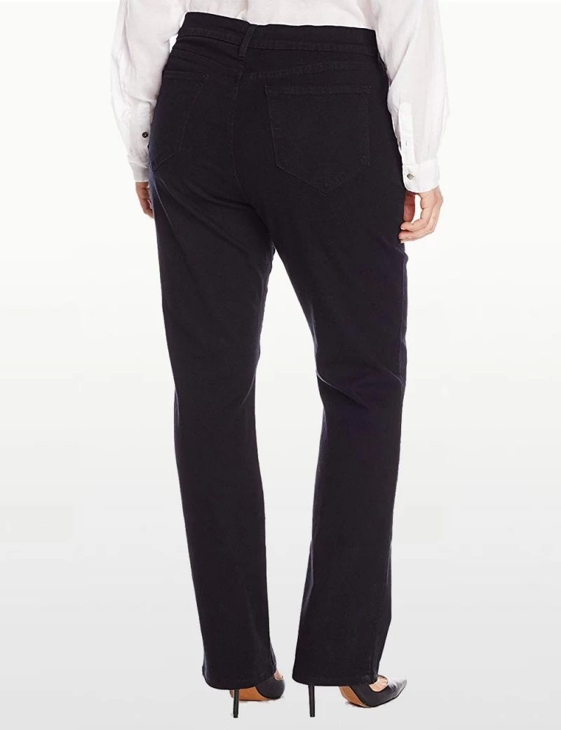 Our most popular jeans the Plus Size NYDJ Black Wash Marilyn Straight Leg Jeans in super soft denim. Five-pocket styling, button closure, plain pockets and NYDJ’s signature slimming fit.
