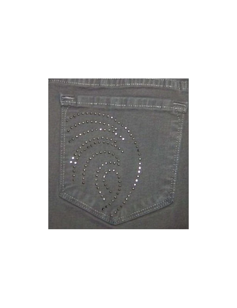 The original Tummy Tuck jean, the Marilyn in Grey overdyed twill with Nailhead detail on the back pockets offers a slimming silhouette, with a unique criss-cross panel that flattens your tummy, lifts your rear, and makes you look and feel a size smaller. Cut straight through the hips and thighs with a straight leg opening, button closure with zip fly, and classic five-pockets.