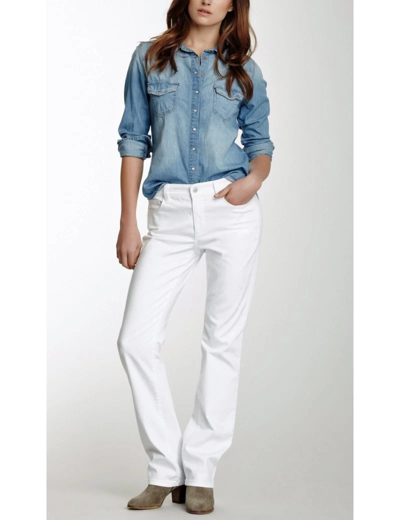 Look and feel absolutely fabulous in a pair of Not Your Daughter’s Jeans White Straight Leg Jeans with Embellished Pockets. NYDJ are known for their amazing lift and tuck technology, lift – the technology actually lifts and subtly reshapes your curves so you look good in jeans, again, tuck – the revolutionary criss-cross panel keeps your tummy in control and makes you look a full size smaller, instantly.