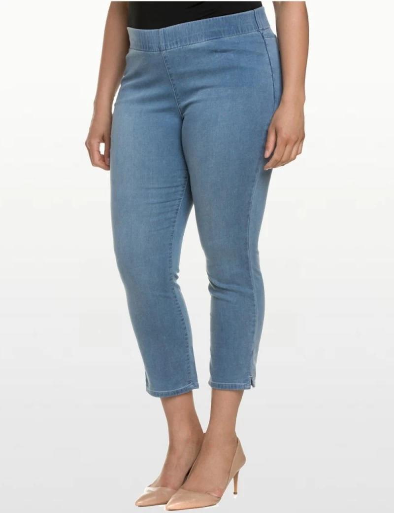 Look and feel absolutely fabulous in a pair of NYDJ Minnie Pull on Knit Jeans. Features plain, pull-on styling, in a light blue wash with the perfect ankle length that looks amazing whether paired with heels, wedges or flats.