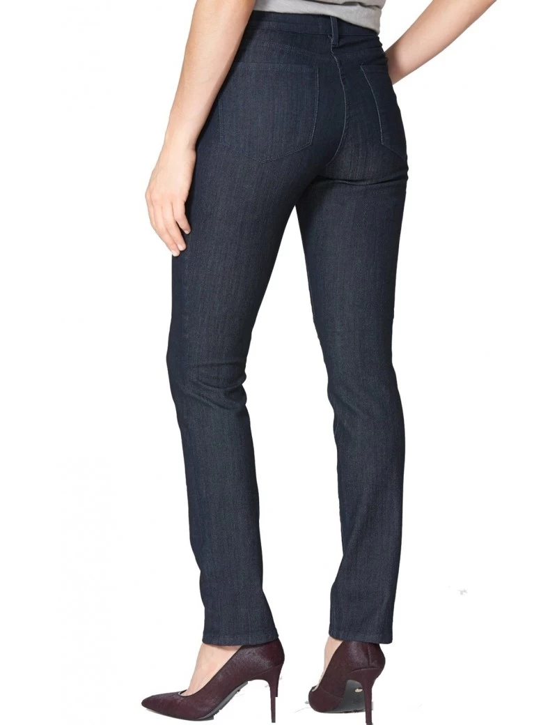 NYDJ’s Samantha Dark Enzyme straight slim leg jeans, flattering and comfortable in lightweight premium denim. Five pocket styling, zip fly with button closure and NYDJ Lift Tuck Technology