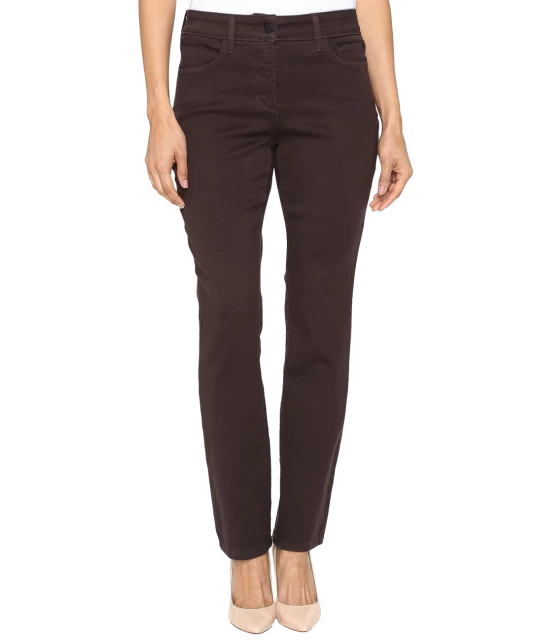 NYDJ’s favorite Sheri Slim Leg Jeans in the Brown Pumpernickel Super Sculpting Denim, a soft fabric that moves with you, without stretching out. This figure flattering slim silhouette features Not Your Daughter’s Jeans exclusive Lift Tuck Technology, five-pocket styling and a zip fly with button closure.