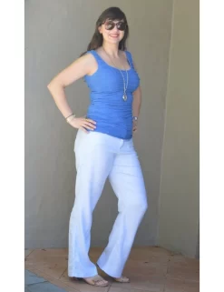 NYDJ – Wylie Pale Blue Wide Leg Linen Trousers *MQIG06GW