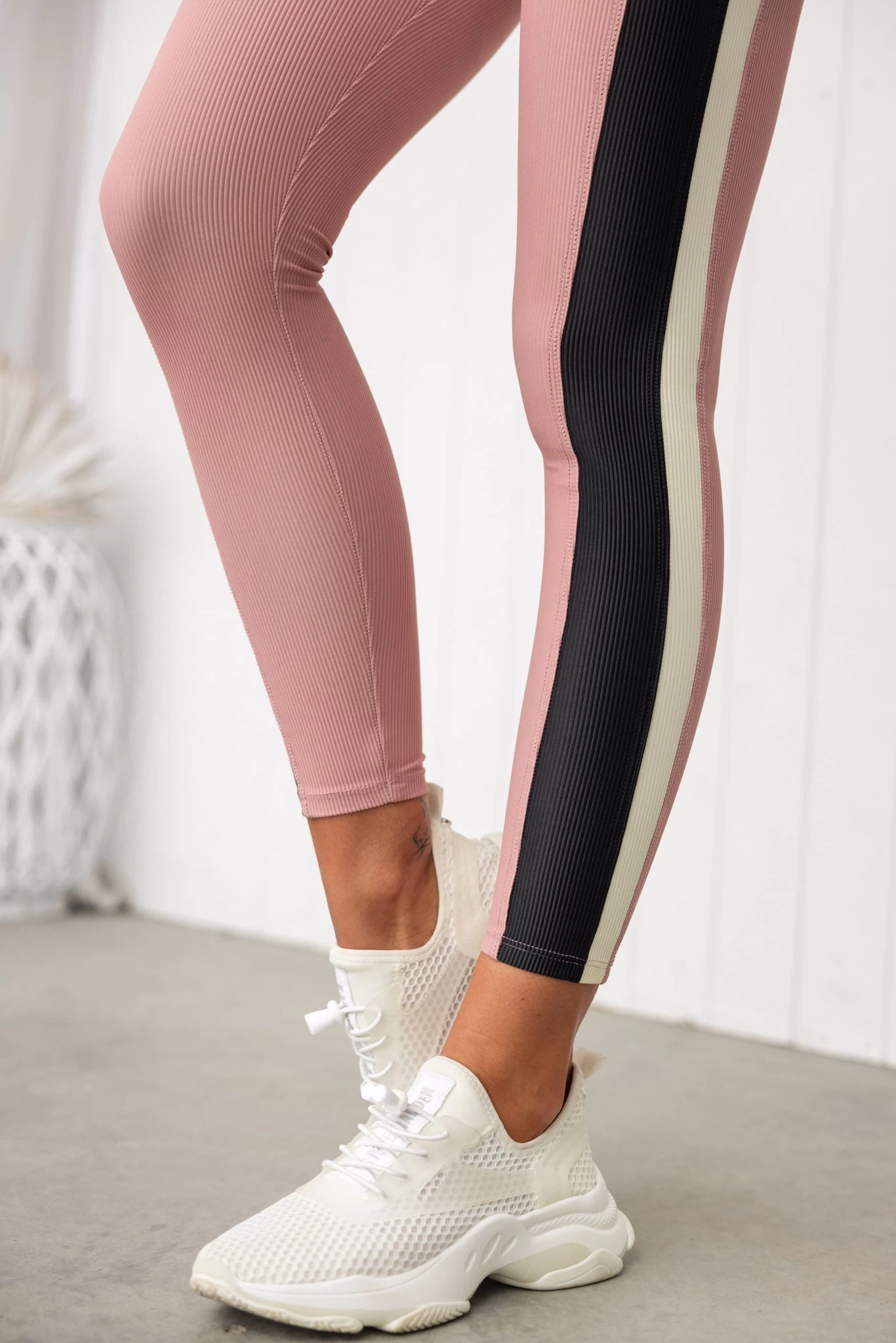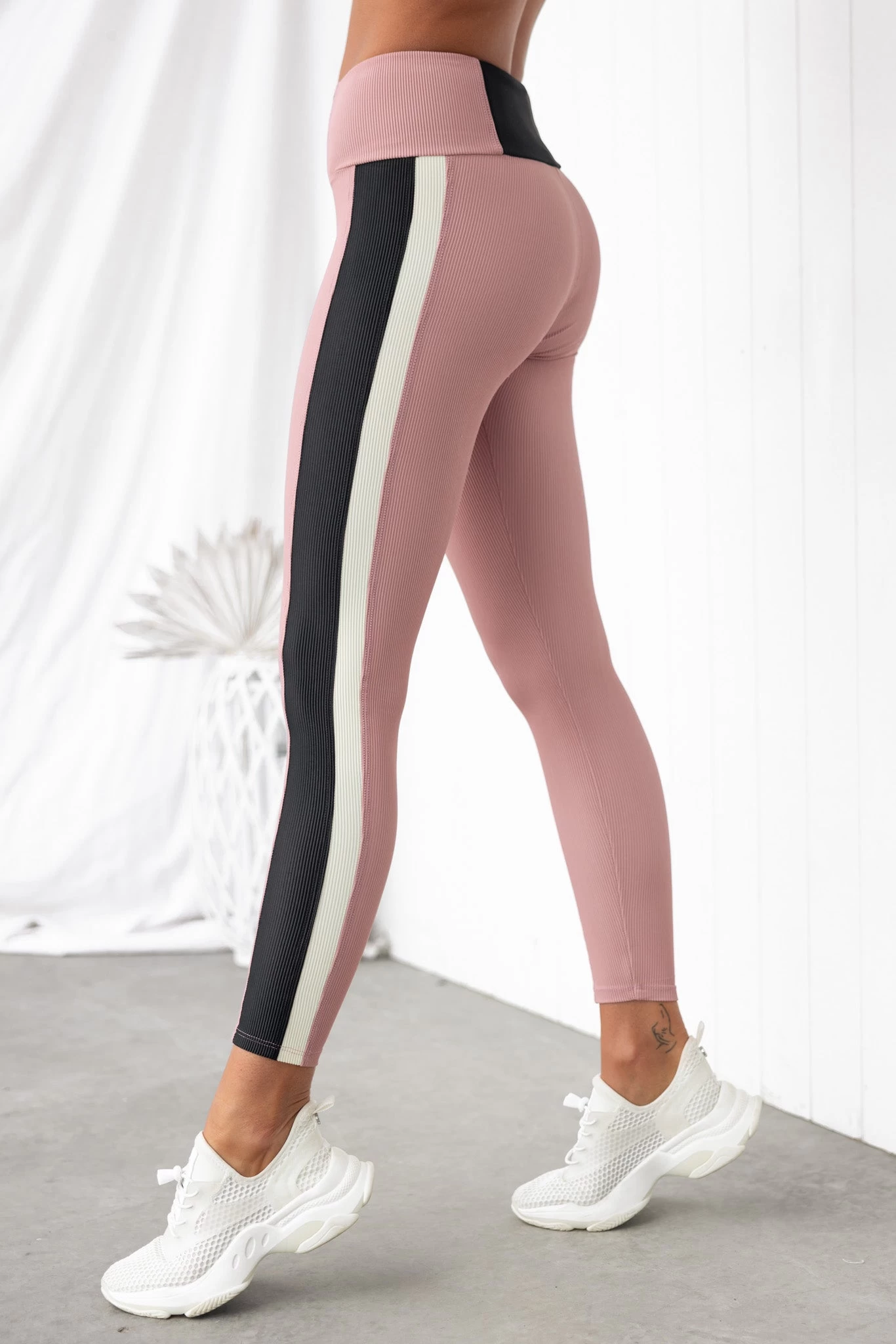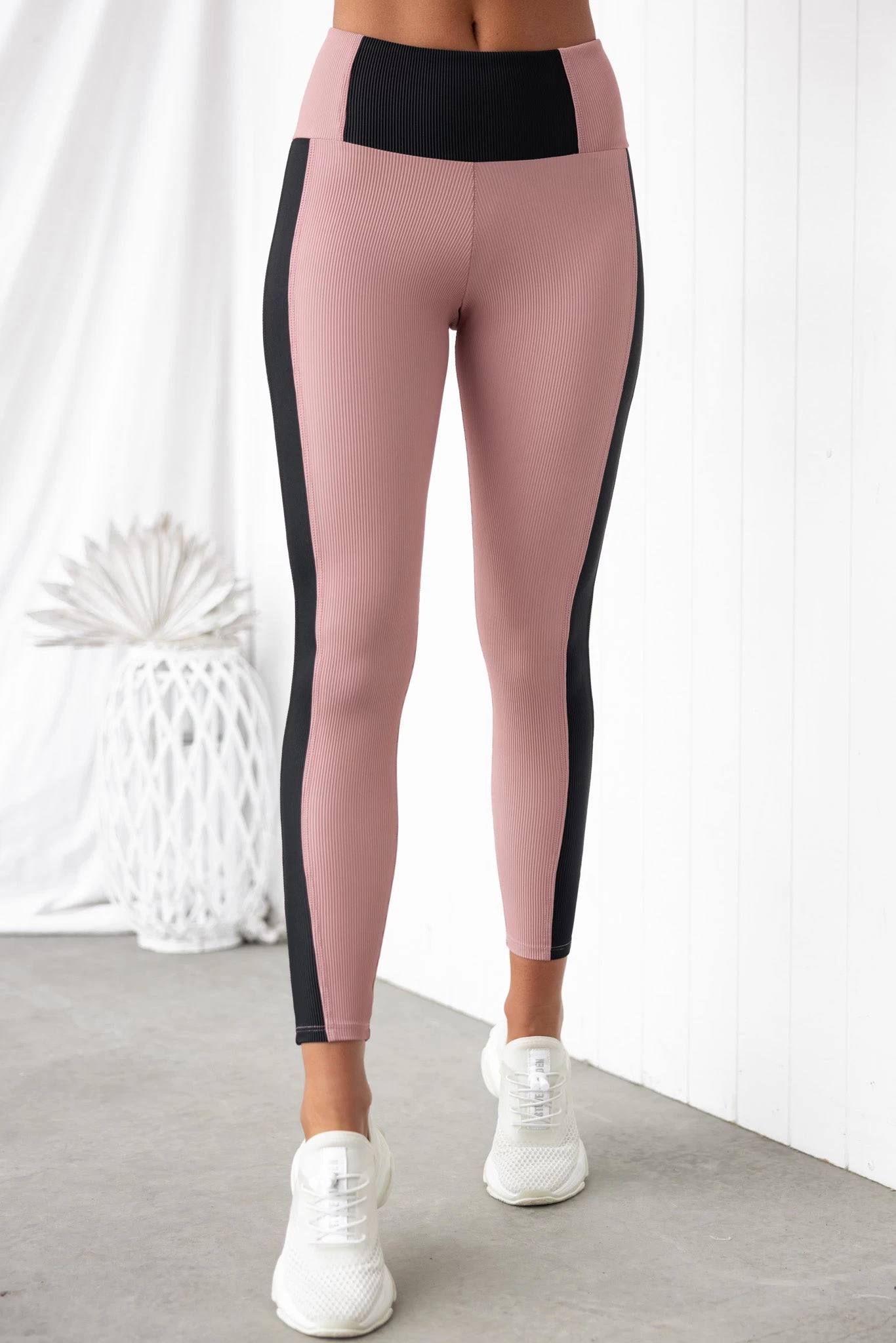 Complete the look with the Colour Block Rib Bra – Antique Rose/Black
