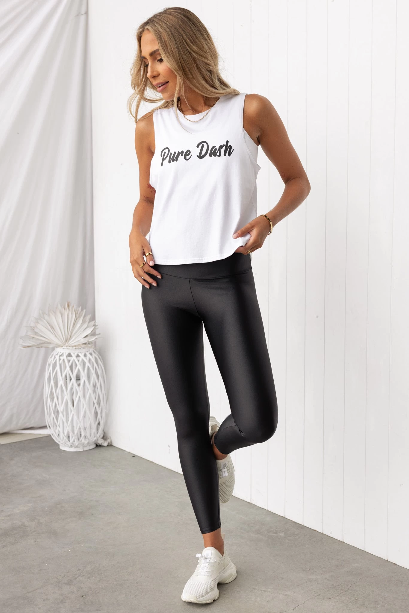 Slip into a good mood (and cute outfit!) with the Liquid High Rise Leggings! We are obsessing over the on-trend, wet look finish teamed with a light-weight performance fabric for a sleek, second skin feel. Complete with a flattering and supportive high waist band, this is a style you will want to wear on repeat. Perfect for low to medium activities including Pilates, Yoga, resistance training and running errands.Â