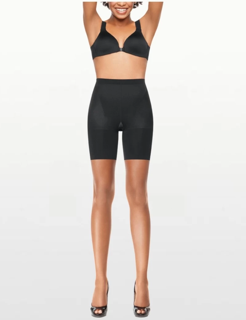 Amp up your confidence in your favorite skirts and dresses with Spanx Super Power Panties®! Tame your tummy and reduce cling with this comfortable yet powerful, super sleek mid-thigh shaper.